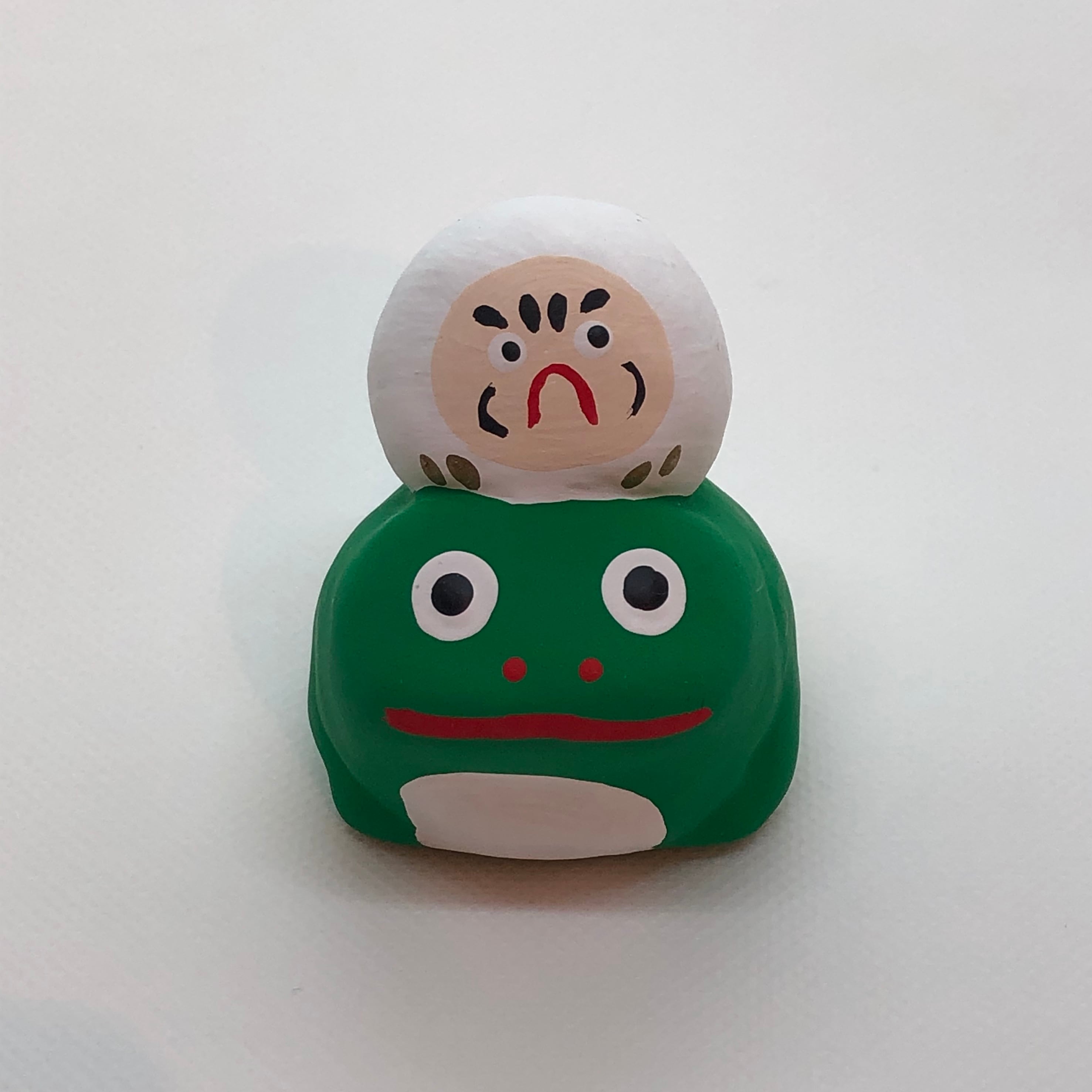 カエルの上にだるまが乗った置物です。